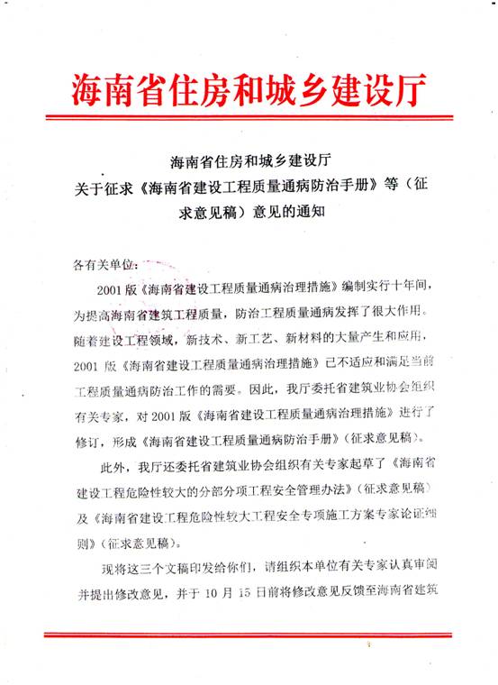 海南省建设工程《危险性较大的分部分项工程安全管理办法》(征求意见稿)