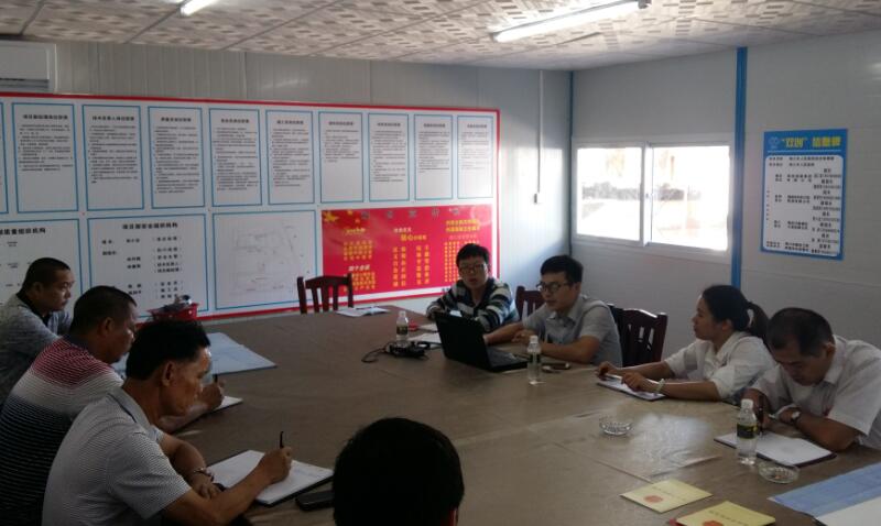 为加快转变建筑业发展方式,充分发挥绿色施工示范工程在建筑节能减排工作中的导向引领作用,受海南万泰建筑工程有限公司委托,海南省建筑业协会于2015年11月9日下午邀请中铁建设集团有限公司海南分公司的专家到海南万泰建筑工程有限公司海口市人民医院综合保障楼项目部进行绿色施工示范工程创建工作指导交流。会议由我会办公室主任林典主持,中铁建设海南分公司绿色施工专家冯友平围绕绿色施工‘四节一环保’(节水、节地、节能、节材、环境保护)和中铁集团公司的先进经验作了详细的介绍,并与现场施工人员就市人民医院综合保障楼项目的绿色施工的做法面对面沟通交流。海南万泰建筑工程有限公司表示,通过专家的现场手把手指导及学习对绿色施工在工程建设中的意义有了深刻的认识,会后要认真总结,让‘四节一环保’的指导思想贯彻到日常的项目工作中。