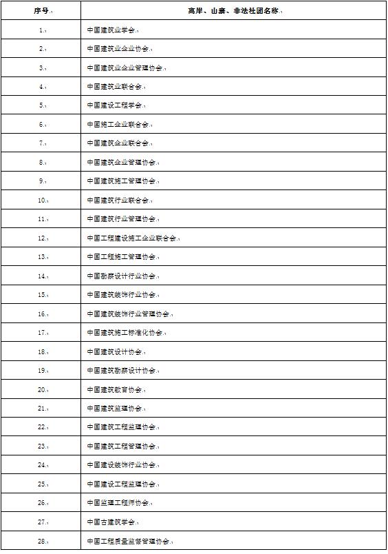 近年来,民政部已公布数百家非法社会组织,经统计与建筑业相关的有75家。