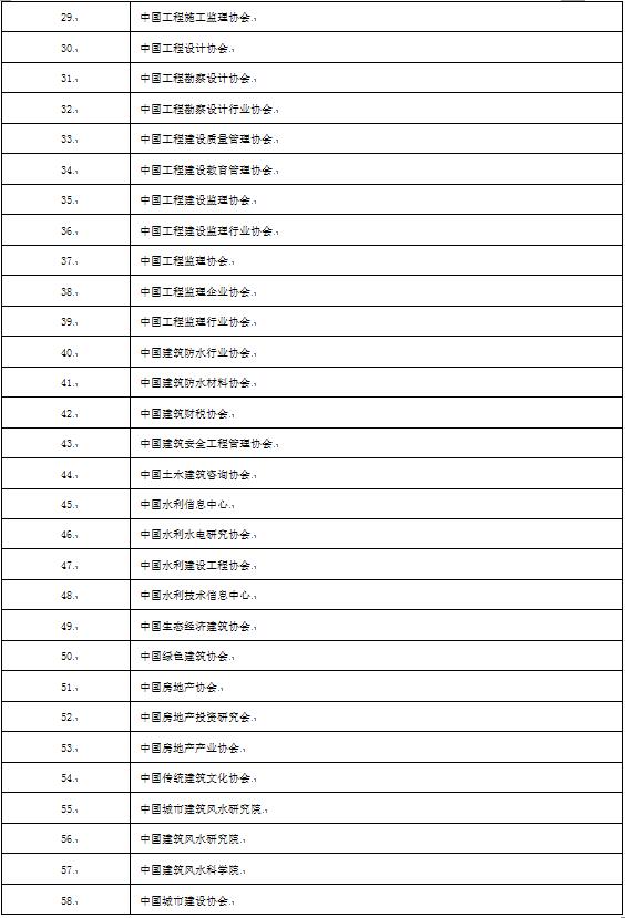 我们将工程建设相关协会(学会、联合会)查询并整理出来,初步统计有58家,供大家参考。