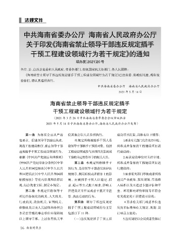 2021 年 5 月 14 日中共海南省委办公厅、海南省人民政府办公厅发布)