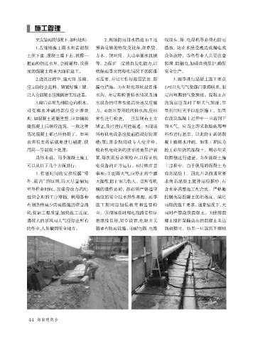 组织合理的工序穿插, 利用各种 相应的安全技术操作规程, 雨季 控制商品混凝土的坍落度,满足