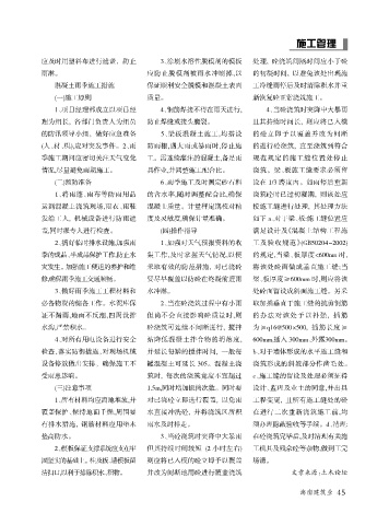 覆盖保护、保持地面千燥,周围要 水直接冲洗砼, 并将浇筑区所积 在进行二次重新浇筑施工前,均