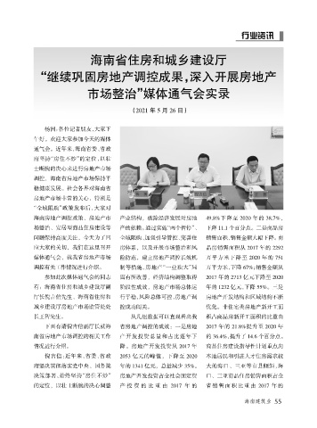 下面有请倪吉信副厅长就海 省房地产调控的成效:一是房地 2017 年的 21.8%提升至 2020 年