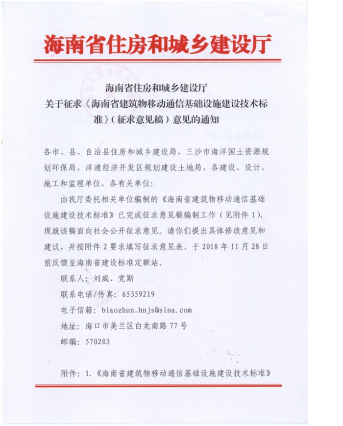 附件:附件1:《海南省建筑物移动通信基础设施建设技术标准》(征求意见稿).pdf